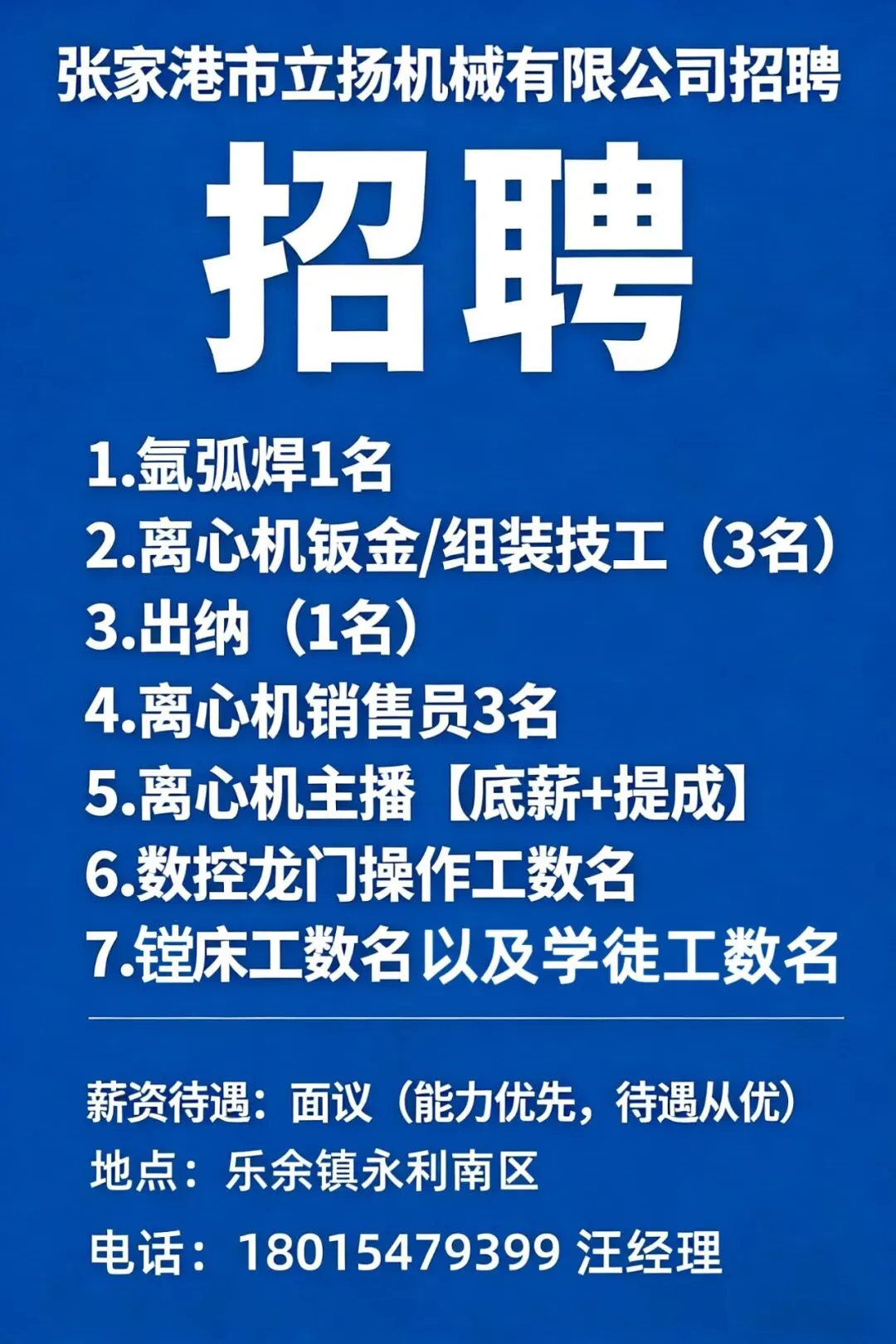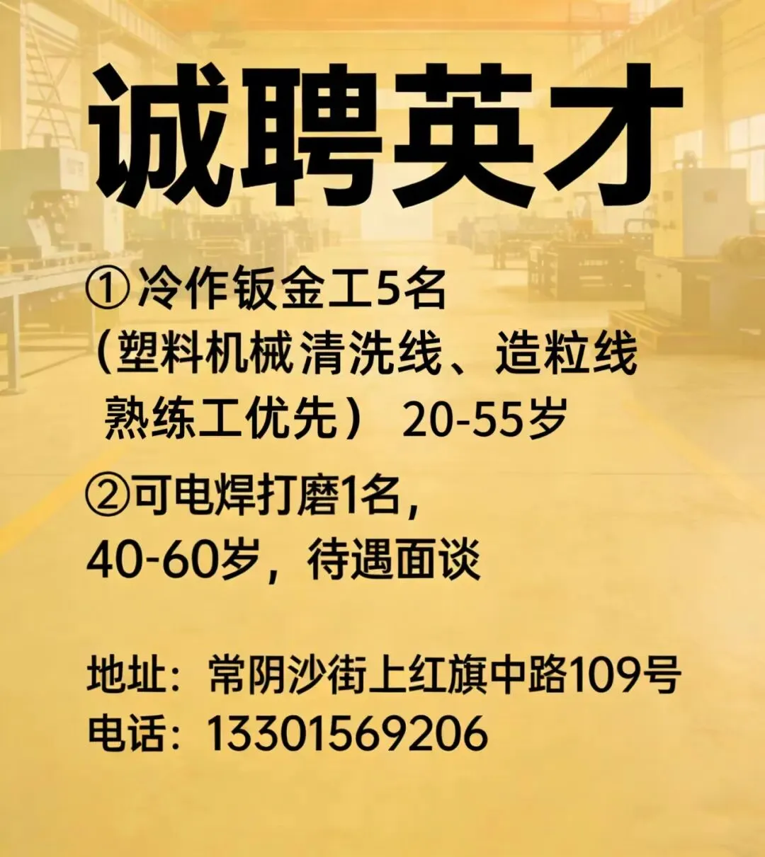 【招聘】机械加工厂因业务发展需要现招聘