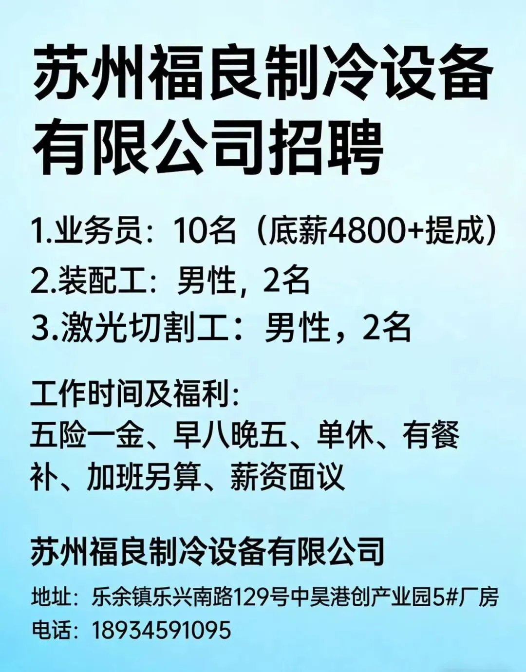 乐余镇乐坤路德濠张家港智造谷公司招聘(4.3)