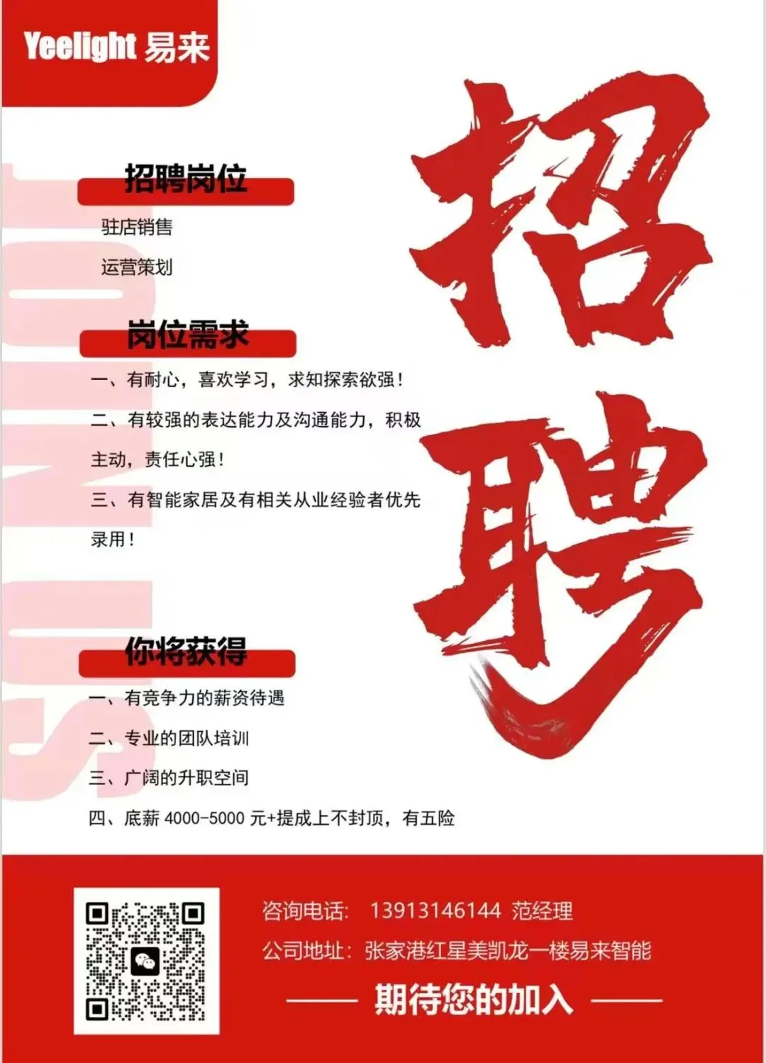 【工作地点】张家港红星美凯龙一楼易来智能
