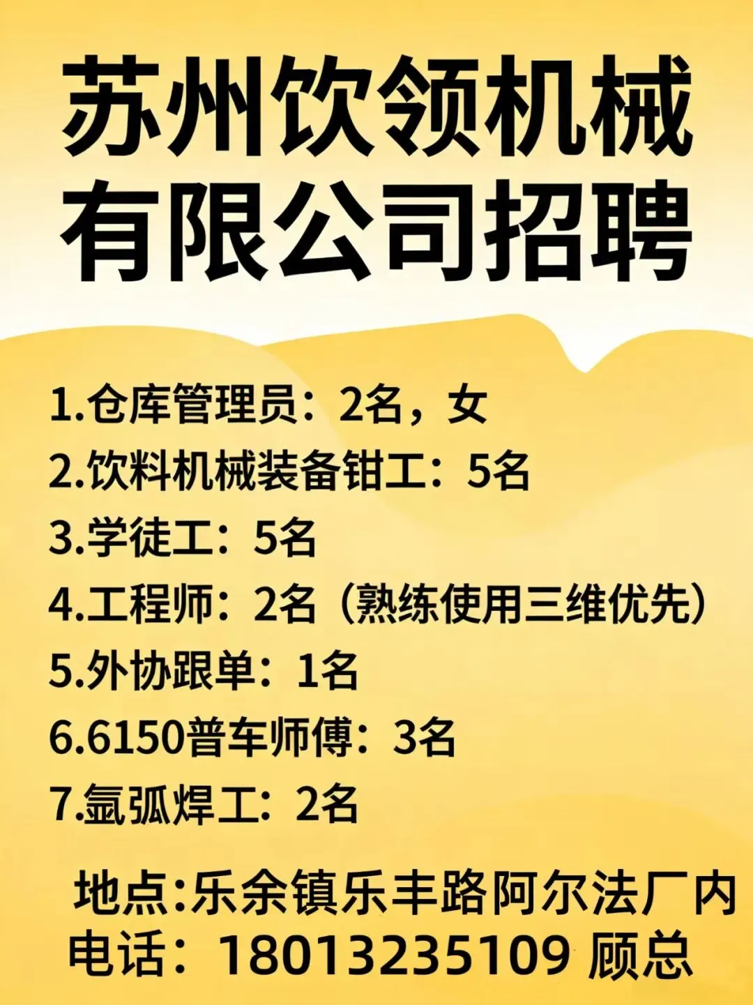 【岗位要求】年龄25-50,吃苦耐劳,动手能力强