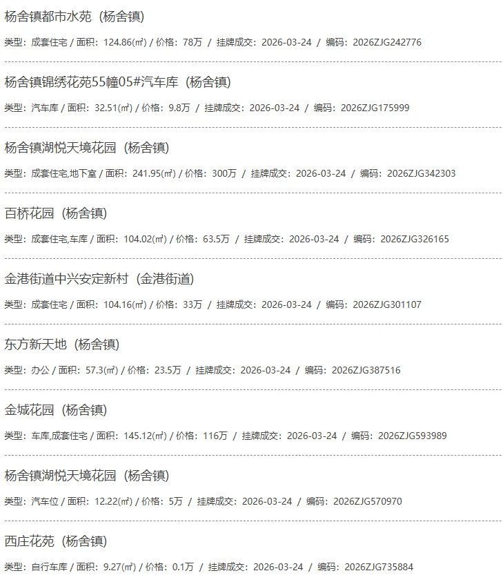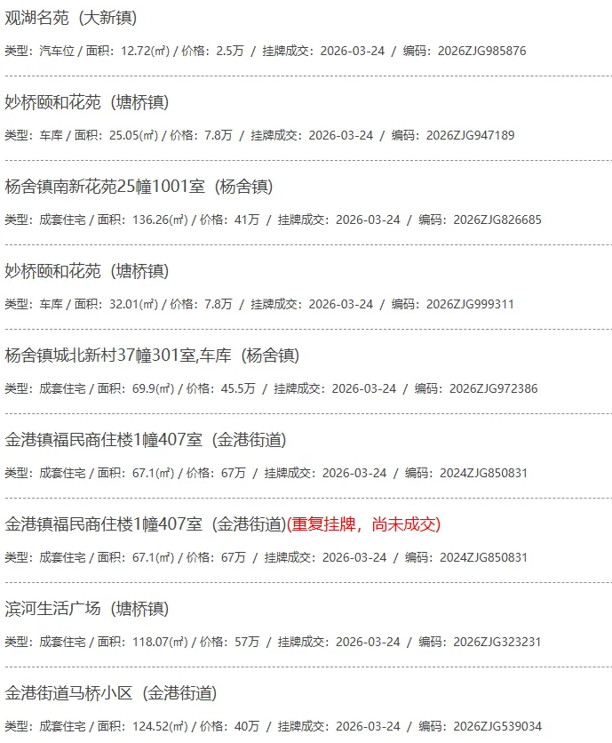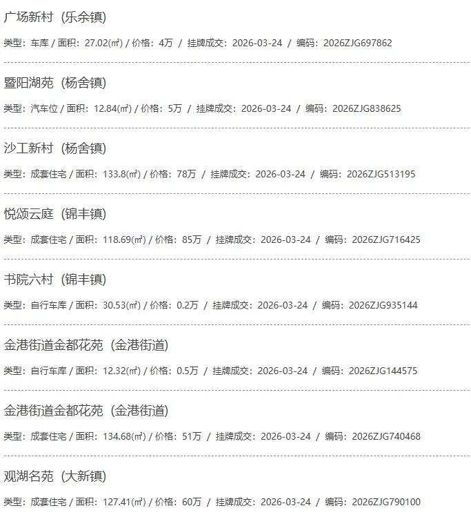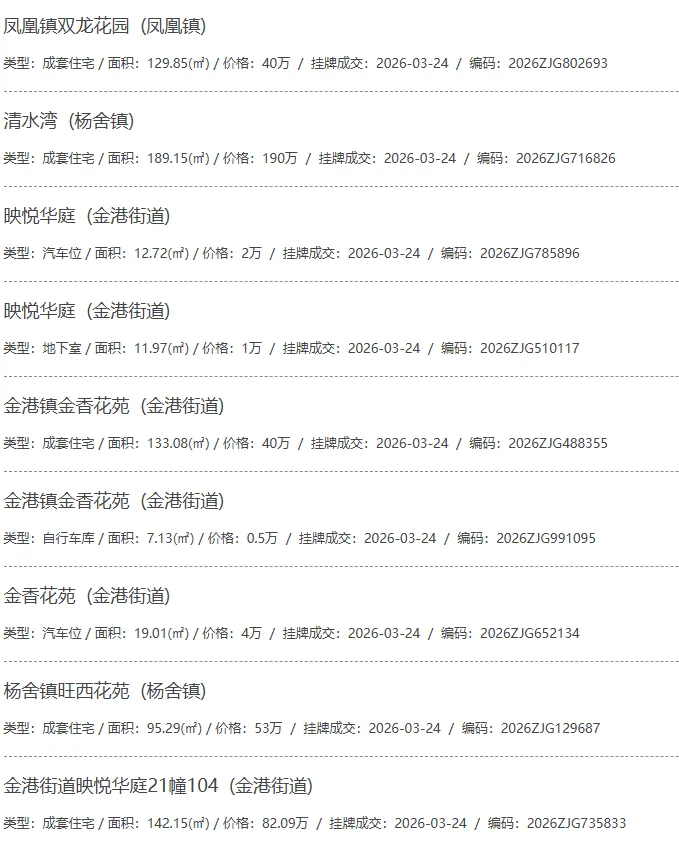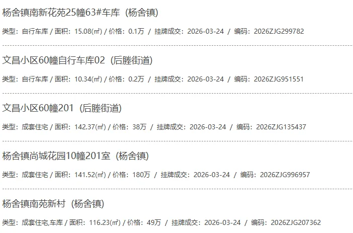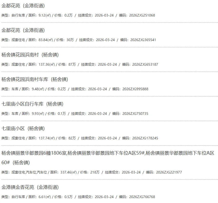 根据张家港房产网(www.zjgzf.cn)整理,(2026-03-24至2026-03-24)总共92套二手房网签挂牌成交(含自行车库及汽车库),数据根据住建局官方网签平台整理,并已同步至各对应小区的成交明细,特别提醒:此处数据及各小区成交数据中凡标注(来自网签挂牌)的,均是根据政府网签挂牌系统整理,价格可能不准,请谨慎采信;并仅作为您买房卖房的参考而非决定依据。以下为数据明细: