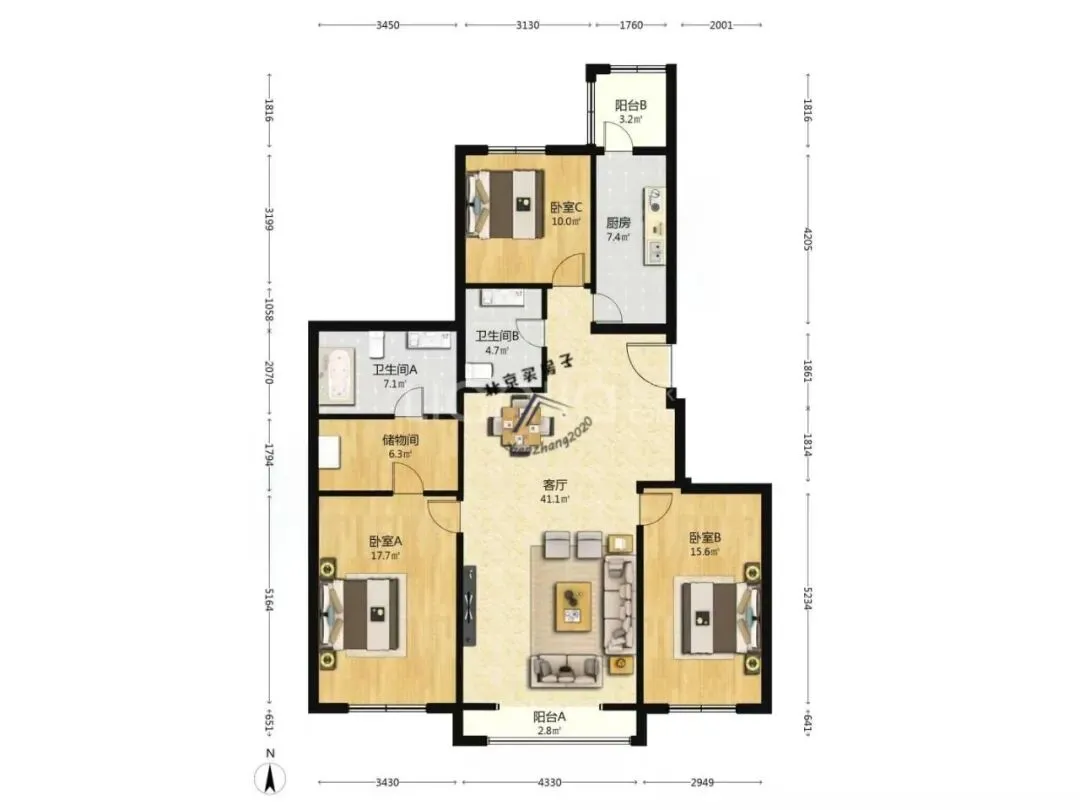 200平米总价约2200万,6.8米客厅面宽大横厅设计,北向还有一个保姆间,功能完备的豪宅大平层。