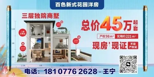 百色新式三层花园别墅实用220平方,4房3卫带3个花园庭院现房现证,独立产权现得证学区:民族高中、初中、小学,迎龙二小、迎龙中学、医疗:妇幼保健院、百色人民医院、百色中医院。咨询电话:18007768889