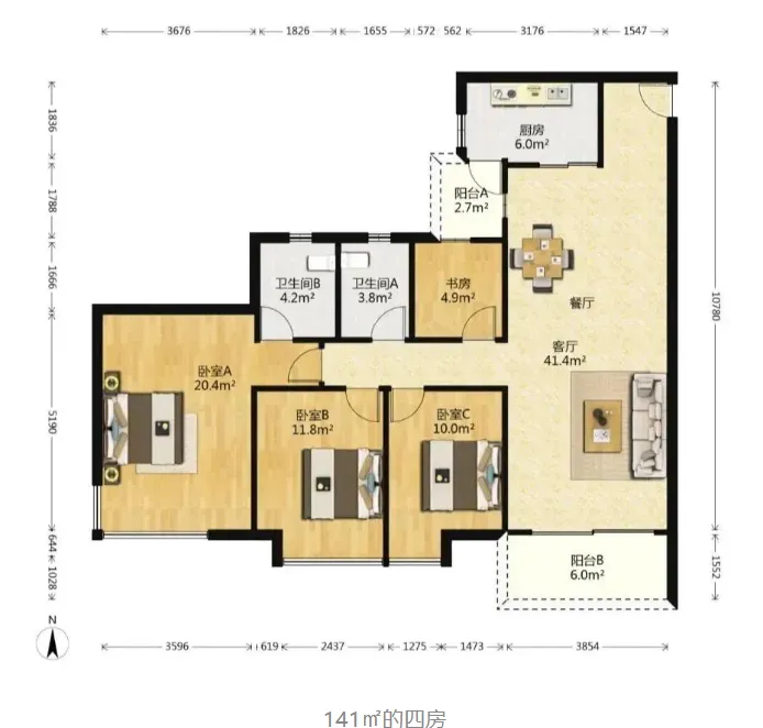 隽园近期成交的141平四房,总价1080万,挂牌3天就卖出了。