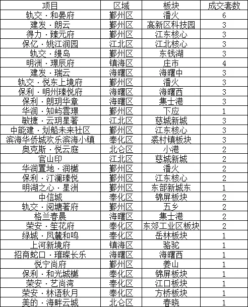 宁波新房每日成交明细