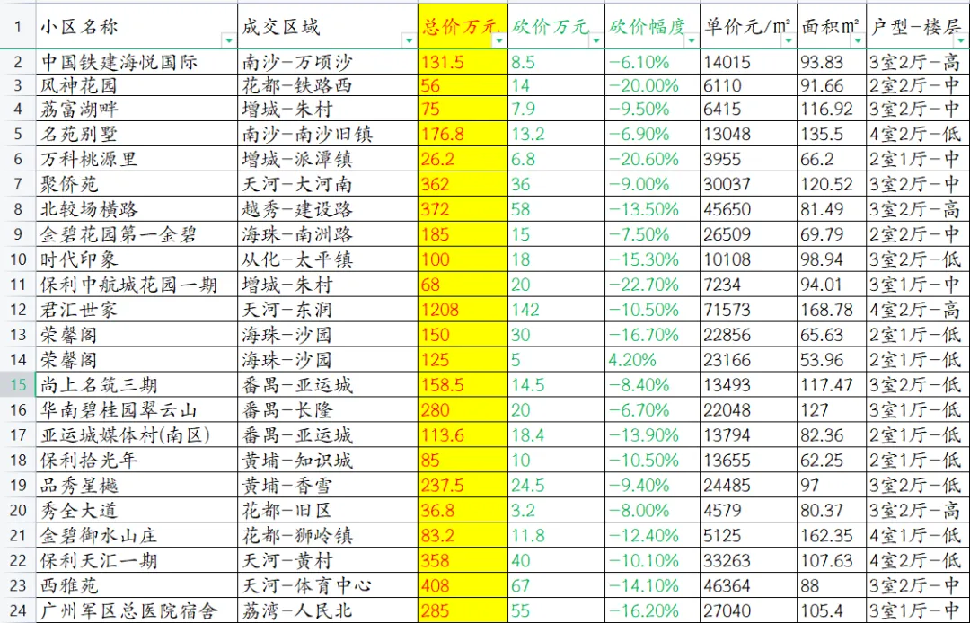 整理了广州2月部分真实成交数据,市场呈现明显的“分化”特征。
