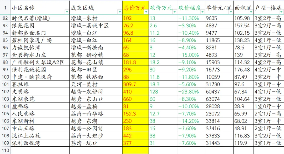 【广州楼市深度观察】本次数据共覆盖108套成交房源。