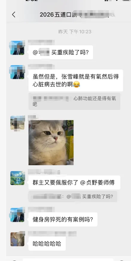还特意@一下我们有个特别爱健身的师兄,买保险没。