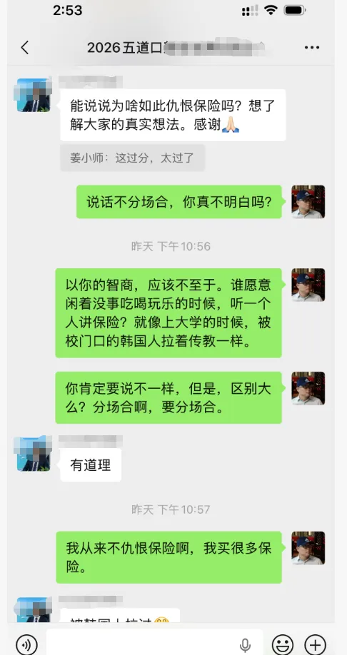 昨晚上,张雪峰传出消息的时候,我有个校友,建筑学的,以前也是大房地产公司的设计总监,是有建筑情怀的,在我们一个吃喝玩乐的群里,又提醒大家要买保险。