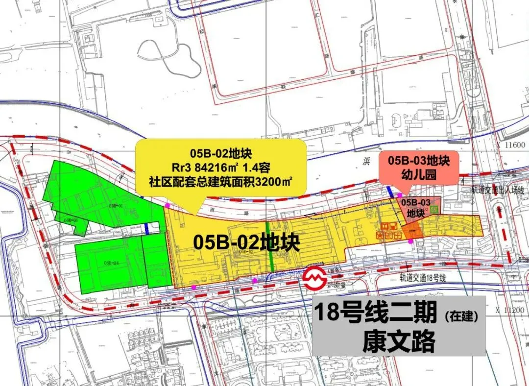 这两幅地块均位于大场建设敏感区N12-1001编制单元05街坊,是轨道交通18号线二期庙行车辆基地上盖综合开发的重要组成部分。