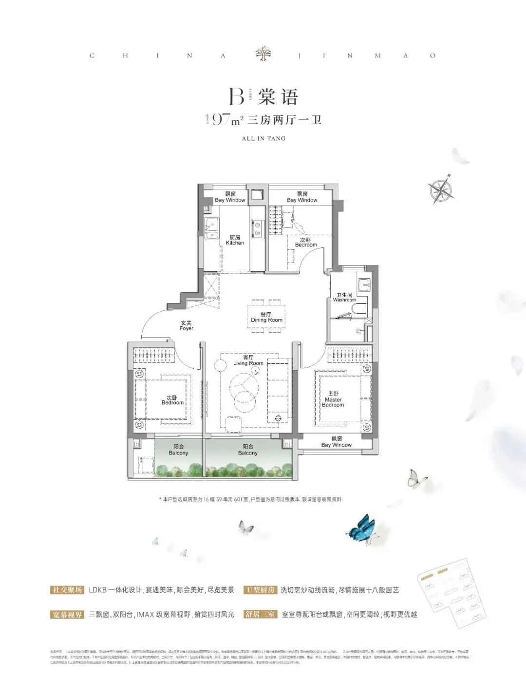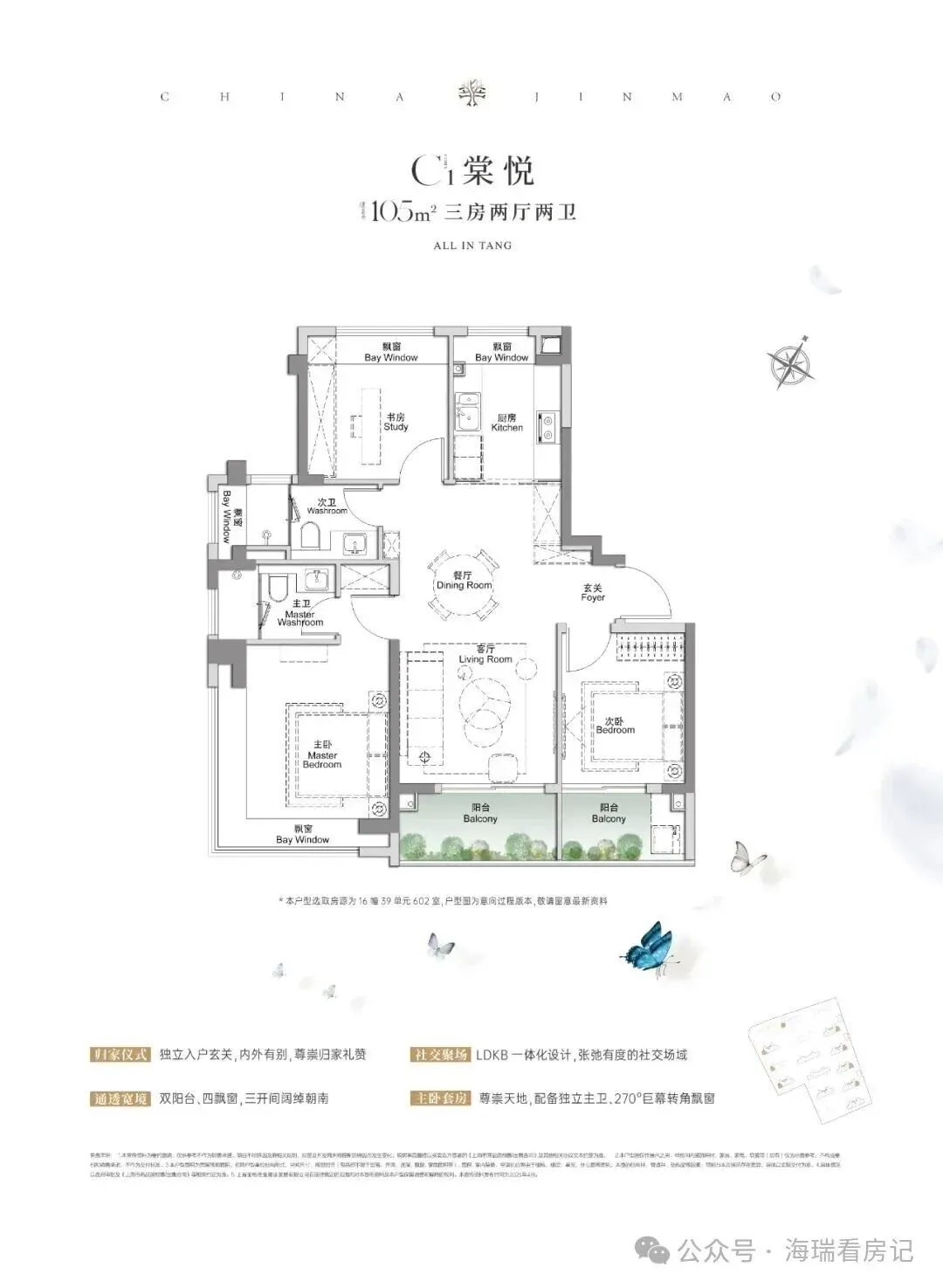 金茂棠前7期认筹,推出建面约97-117㎡三房,均价约50898元/㎡。