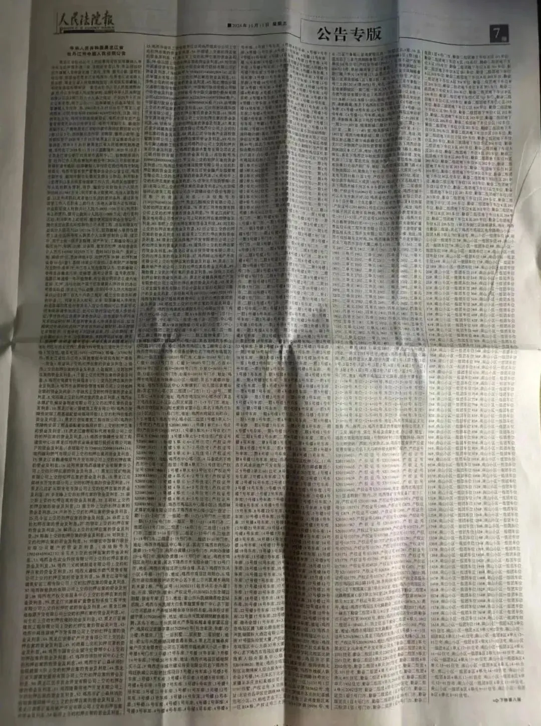 上图,一整版都登不下的查封房产。