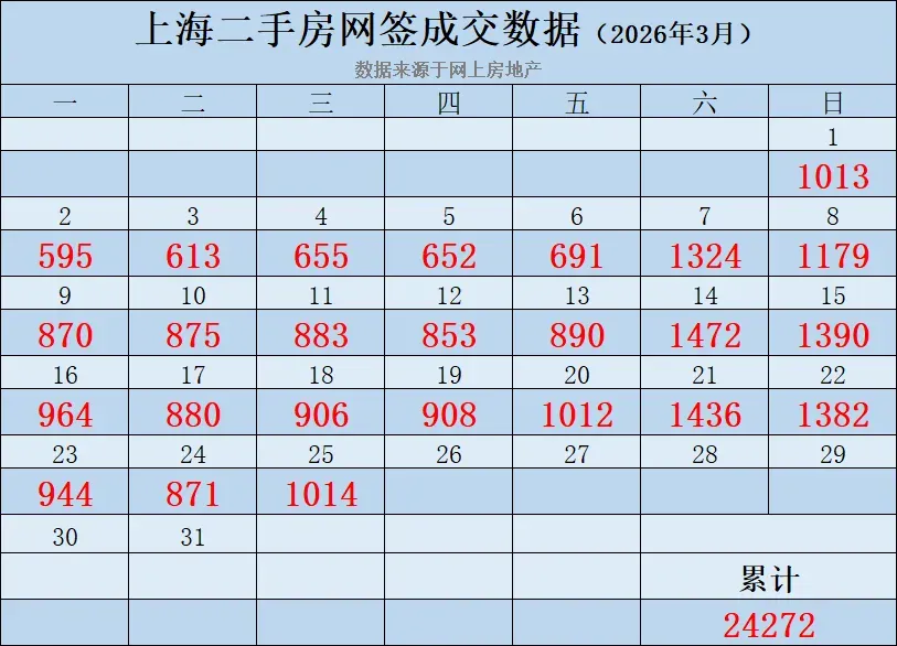 2026年3月上海二手房成交统计:(数据来源网上房地产)