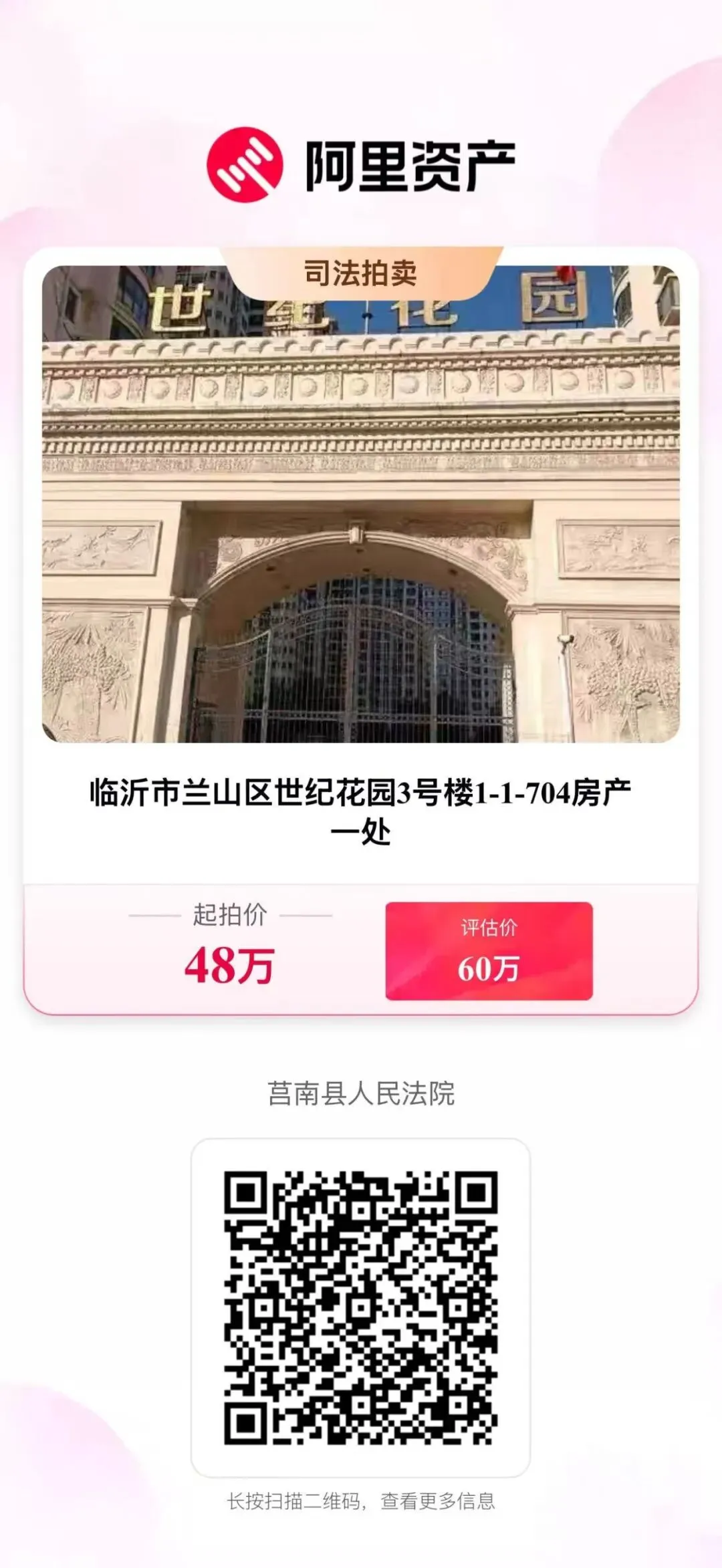 【法拍房产】4月10日临沂市兰山区世纪花园小区房产拍卖