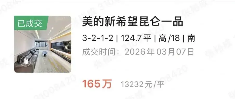 徐州二手房最新成交:美的新希望昆仑一品13232元.