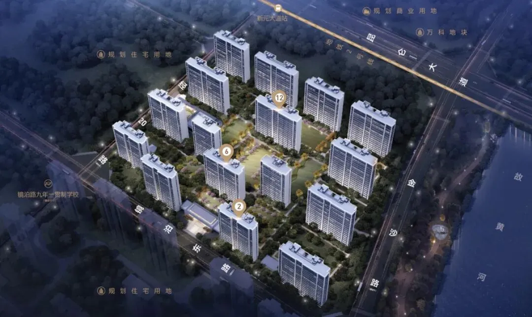 :2022年初首开,推出2、6、12号楼共216套房源,建筑面积约108-173㎡,均为毛坯交付。