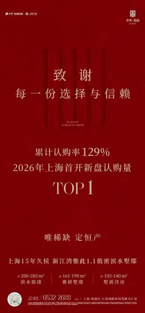 总体来看,新政对限购门槛、公积金贷款及房产税的多重优化,有效激活了刚需与改善型需求。金茂、保利、华润等品牌房企凭借精准的板块布局、过硬的产品力及高效的兑现能力,在多个细分市场实现热度与成交的双重突破,进一步巩固了其在上海市场的头部地位。