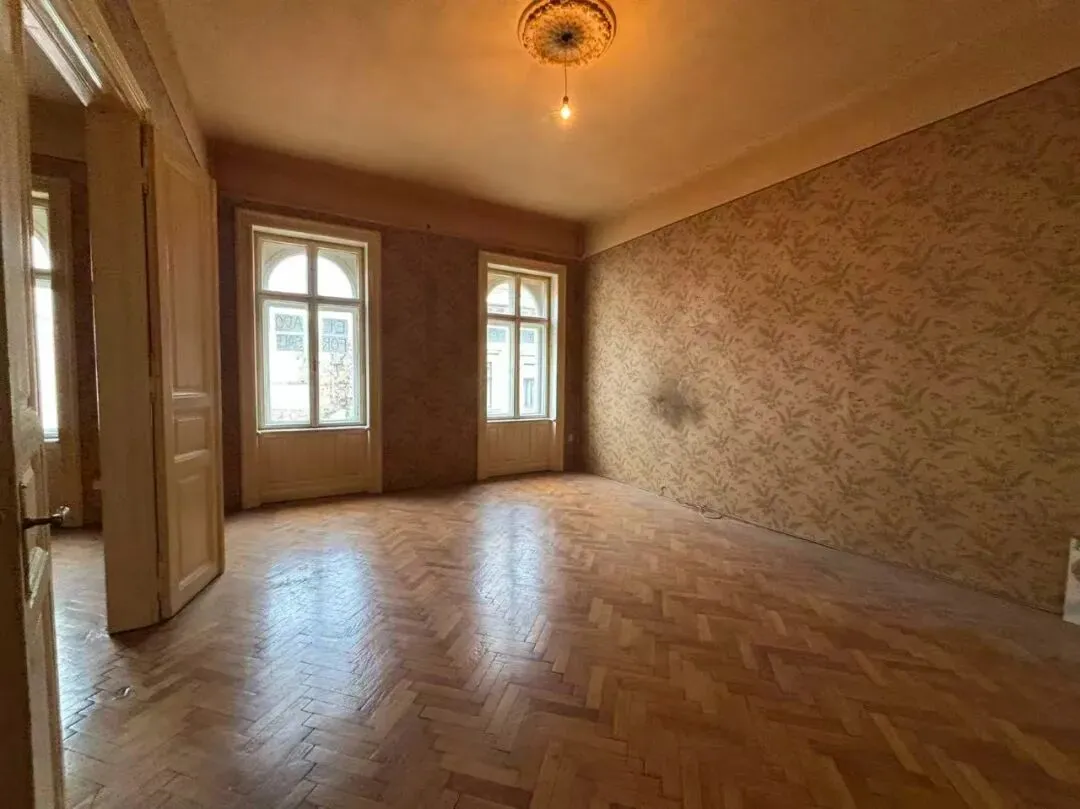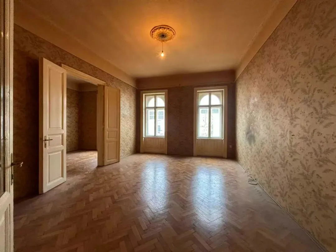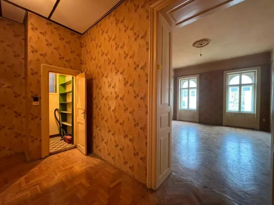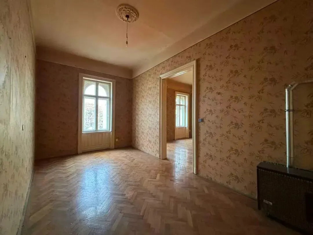公寓房契面积82平方米,带3平方米阳台,实际使用面积约87平方米,朝东,格局方正,采光充足。现有三间卧室、一个门厅、厨房、浴室和独立卫生间,空间布局合理,可根据个人需求灵活改造。厨房旁设有储藏室,阳台为理想的休憩空间,全屋部分区域铺设实木地板,其他区域为瓷砖地面。门窗均为木质结构,供暖方式为燃气对流供暖。建筑为受保护建筑,整体需要翻新装修,可打造理想居所。周边配套齐全,步行可达超市、地铁、公交车站及各大景点,市中心繁华便利,生活与出行极为方便。