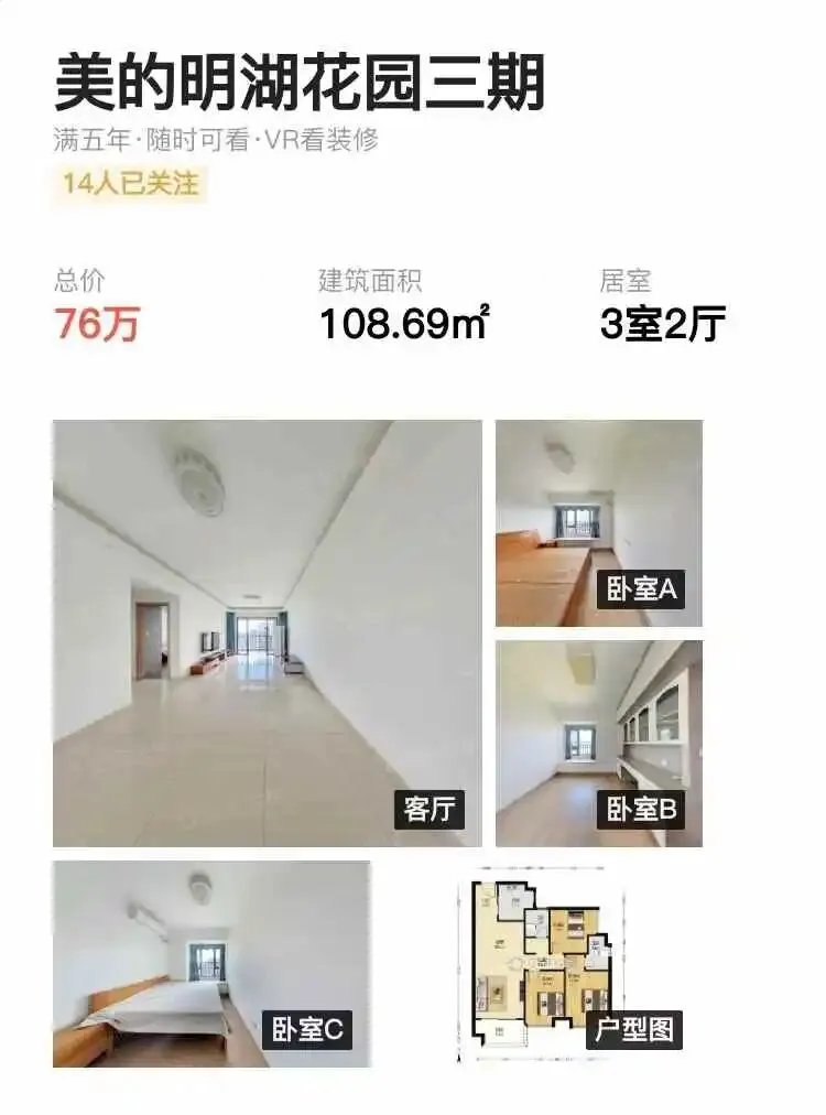 荷城片区,电梯大三房,小区管理,总价4字头可入