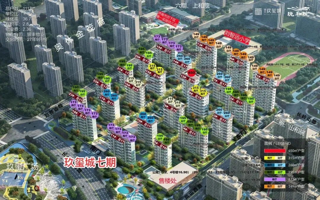 那还是说一下片区的新房,银丰玖玺城七期珑和院刚刚加推了18号楼的173户型,420万左右起步吧,450万左右能买到个一般楼层,这栋楼的优点就是前面是绿地公园采光无遮挡,缺点就是沿街!另外19号楼可能性价比更高,喜欢安静的可以选择19号楼,173这个户型也是我重点给大家推荐的,因为放眼整个银丰玖玺城,放眼整个长岭山片区,这个户型房源很少,也就是说在400-500总价区间,他很有竞争优势,所以我的一贯观点,包括直播时候也经常提及,你买房子,不仅要把你所买的户型放在整个小区看,也要放在整个片区来看!另外150的户型,总价可以到320-370万,195的户型能到520-570万,这些也是可以考虑的!银丰玖玺城七期毕竟是户均205平的盘,满足改善比较纯粹的圈层的需求!