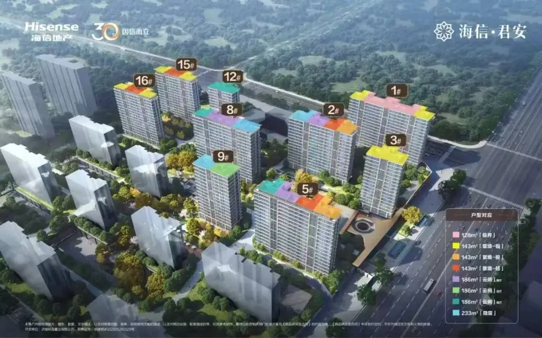 然后就是海信君安,一体这个盘两极分化,有的人说贵,再降50万还差不多,这个盘是给对生活品质有一定要求的人准备的,整个盘的品质,园林,会所,绿化都不错,产品非常不错,所以适合对居住品质有很高要求同时收入比较高的人群!这个盘依然是东部热门楼盘,而且卖的非常好,目前主力销售15 16号楼的143户型,价格在330-370 这个区间吧!顺便说一下,有的人说等到现房再买海信,因为海信是现房专家,我的建议128 143的你不要等,因为到最后肯定就是买到没了或者剩下一些性价比不高的房源,186 和230 的户型建议你等等到现房再买,或许有惊喜!