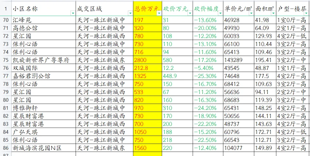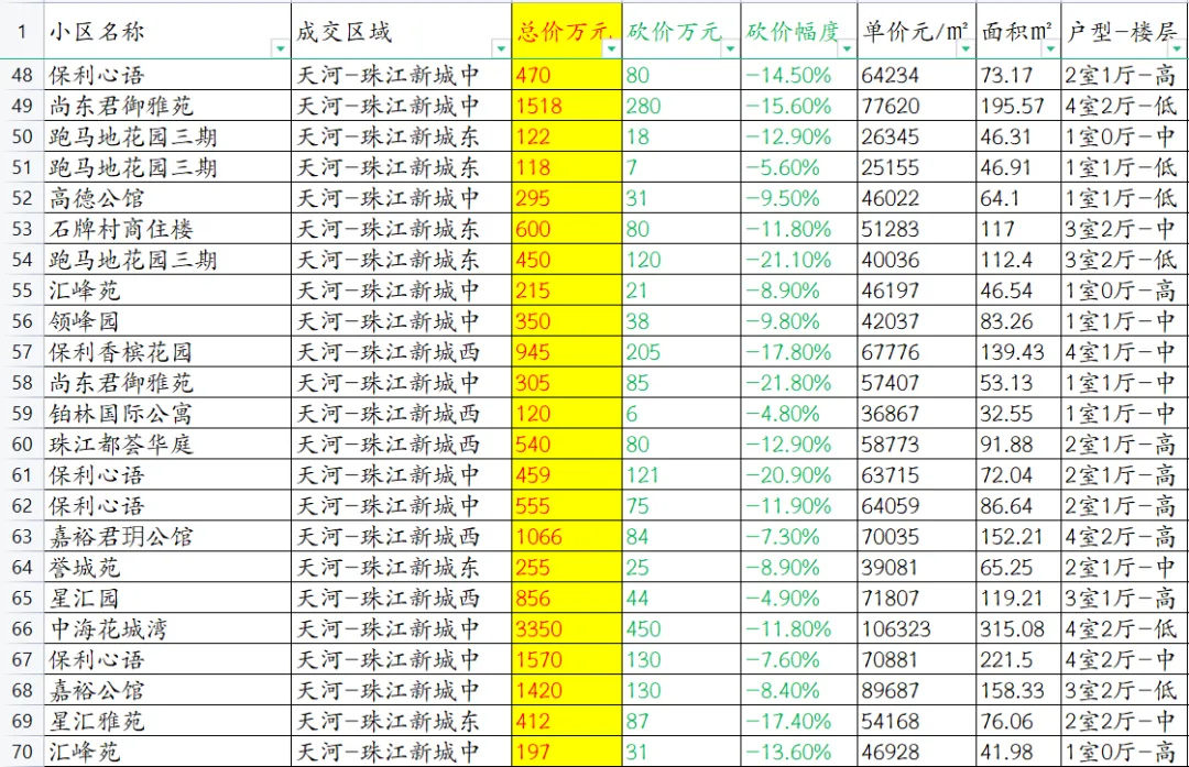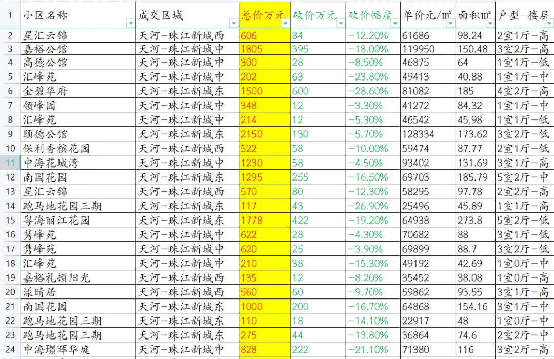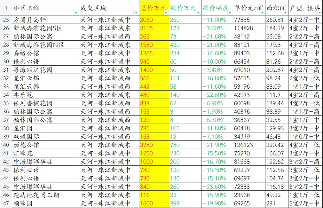 >[日更第15期]广州天河区珠江新城板块二手房成交记录,你看好哪个小区?
