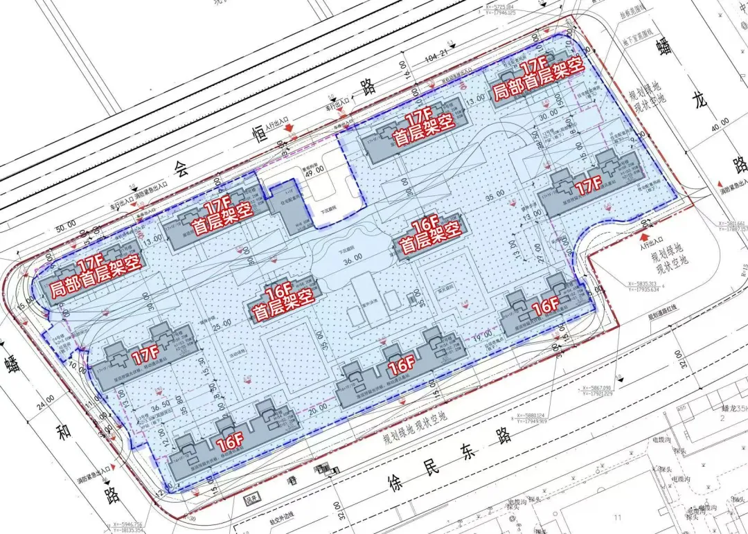 根据规划设计方案显示,项目全域抬板,规划11栋16-17 层小高层,全部两梯两户,部分楼栋打造首层架空