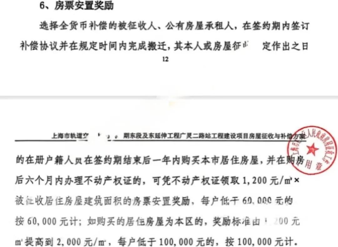 日前,虹口区正式公布轨道交通20号线一期东段广灵二路站房屋征收补偿方案。该方案涉及石油新村5-7号等49证居民,征收范围已明确。方案首提“房票”奖励安置模式,为被征收人提供多元化补偿选择。奖励内容包括一年内购买住房的,可凭不动产权证领取1200元/㎡×被征收房屋建筑面积的房票安置奖励,保底6万元。如购买虹口区内住房的,奖励标准提高到2000元/㎡,保底10万元。目前相关评估工作已启动,标志着该项目进入实质推进阶段。