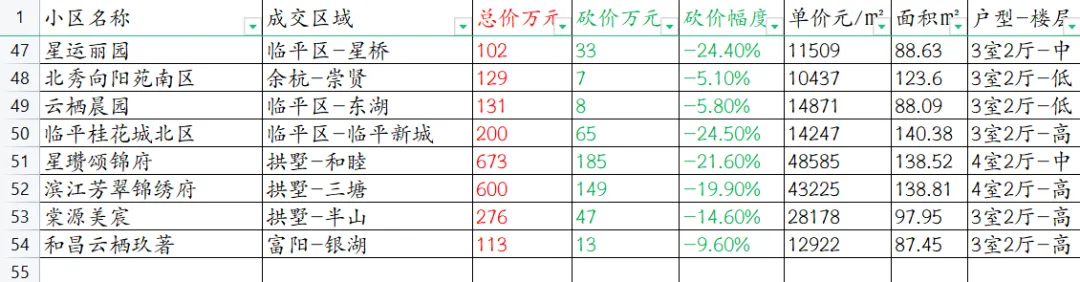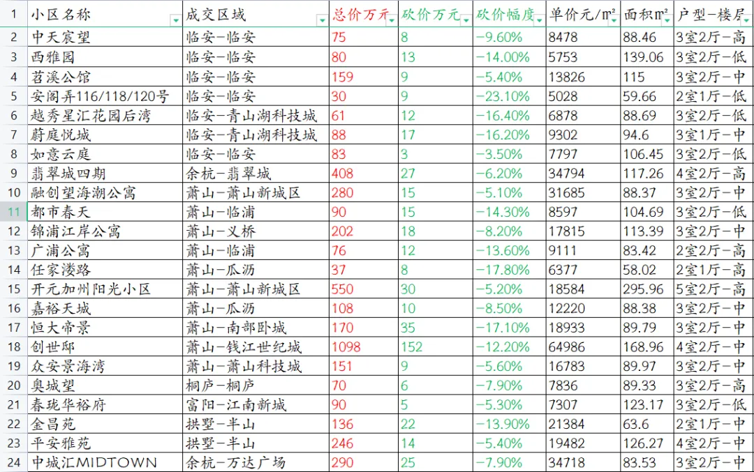 【杭州楼市深度观察】本次共统计53套房源成交信息。