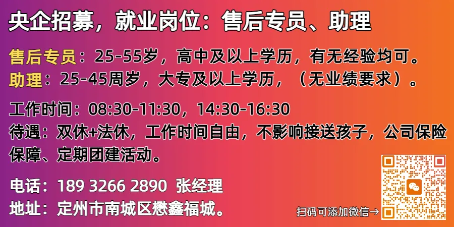 售后专员:25-55岁,高中及以上学历,有无经验均可。