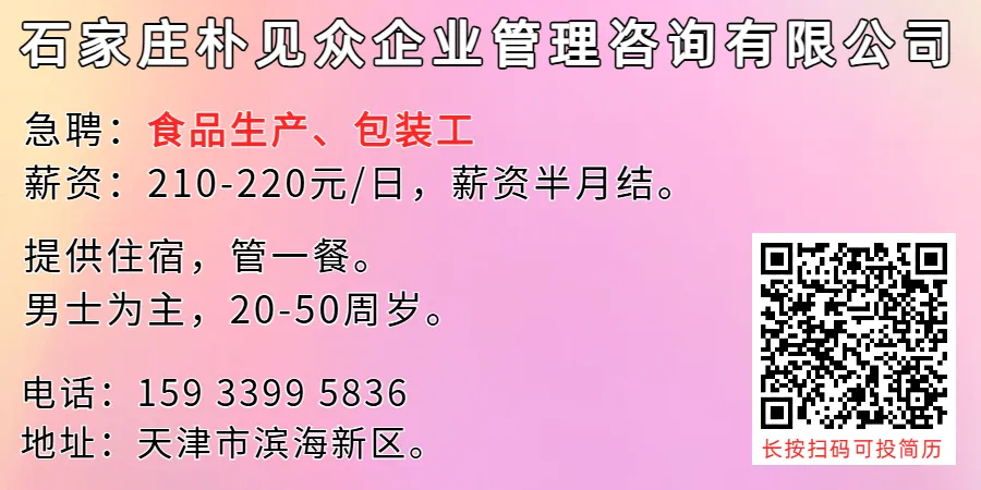 职位要求:吃苦耐劳,爱岗敬业,短期工勿扰。