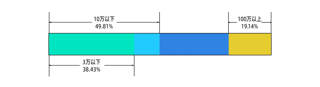 其中,注册资本超过100万的只有8万多家,占比不足20%;而注册资本在10万以下的公司却有21.5万家,几乎达到50%;注册资本在3万元以下的有16.6万,超过38%。