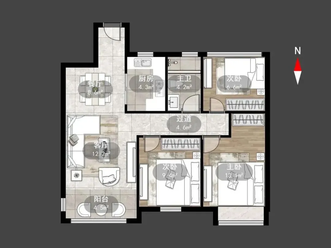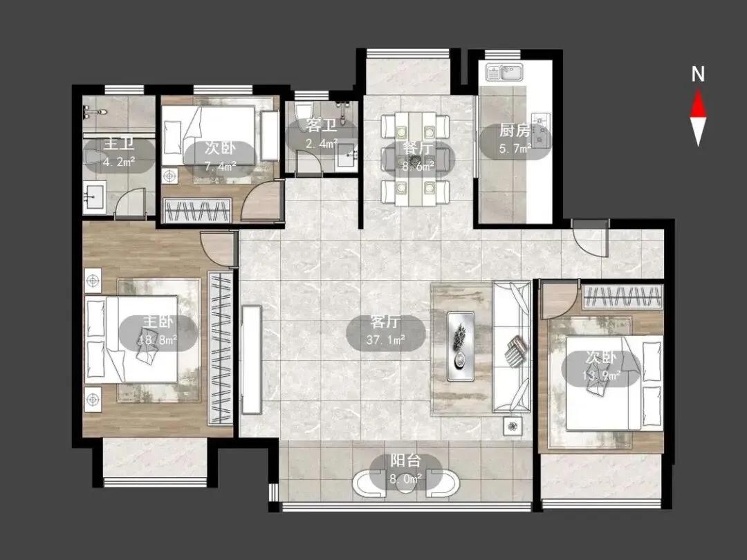 🏆 148㎡大三房两卫,南北通透,格局大气。