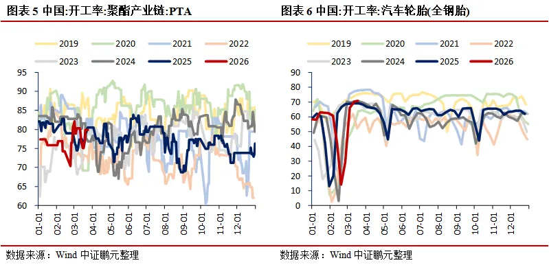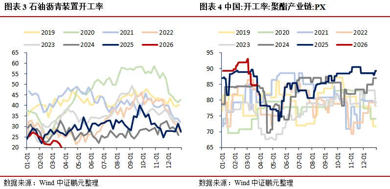 生产:工业生产分化,石油沥青装置开工率为19.30%,环比下降2.50个百分点;聚酯产业链PX开工率为84.98%,环比上升0.27个百分点;PTA开工率为79.90%,环比上升4.82个百分点。