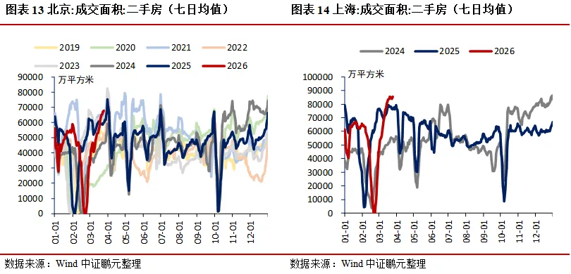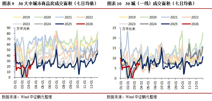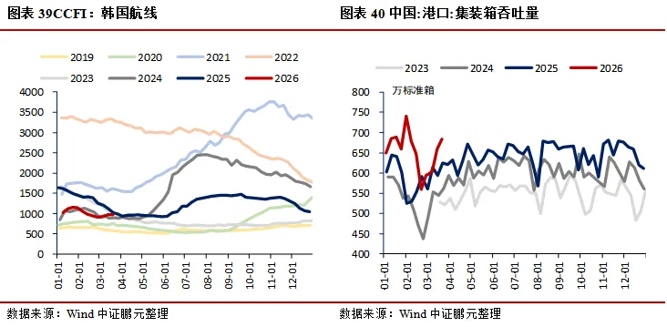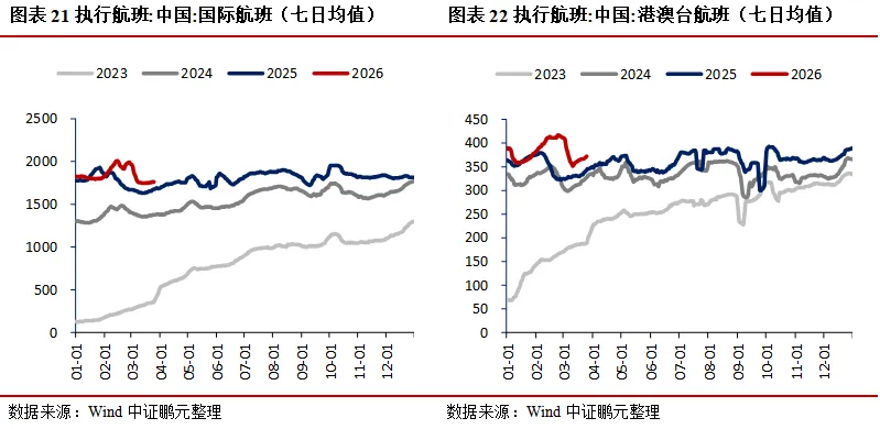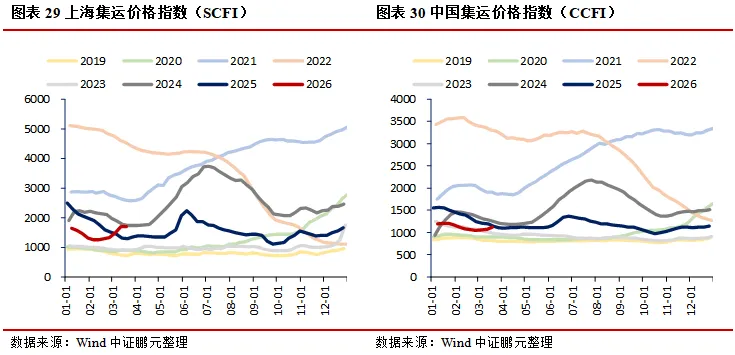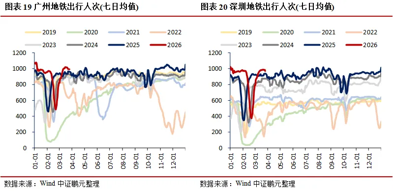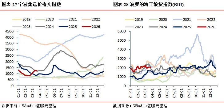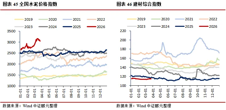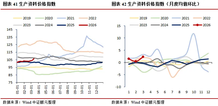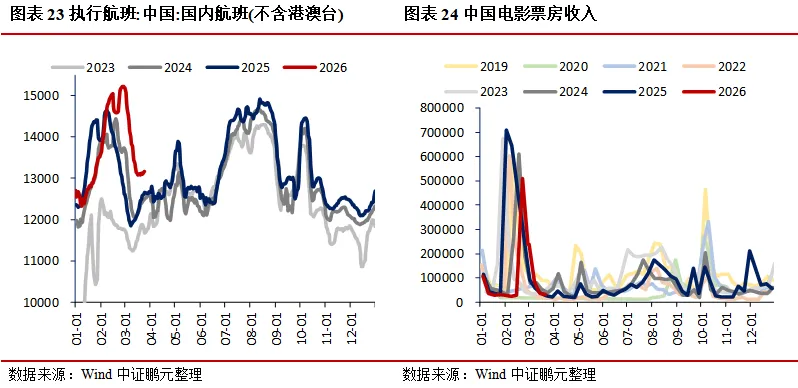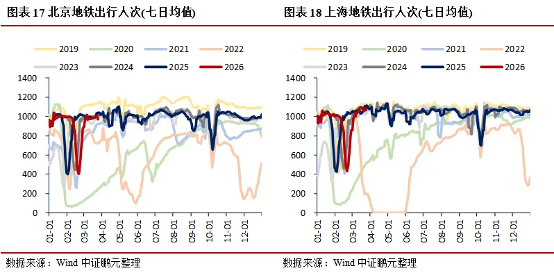 需求:地产方面,30大中城市商品房成交面积(七日均值)环比上升23.94%,其中一线城市、二线城市、三线城市分别环比上升9.65%、34.82%、16.43%;二手房市场持续走强,上海、北京、深圳成交面积(七日均值)分别环比上升2.38%、13.68%、14.34%;土地市场中,100大中城市成交土地占地面积当周值环比上升40.73%,成交土地溢价率当周值环比下降1.73个百分点。消费领域,电影票房收入当周值环比下降12.10%,乘用车厂家零售、批发当周日均销量分别环比上升14.01%、8.35%;航空出行回暖,国际航班、港澳台航班、国内航班(不含港澳台)执行量(七日均值)分别环比上升0.83%、1.92%、0.42%。出口方面,BDI指数环比下降3.05%,港口集装箱吞吐量环比上升3.70%。