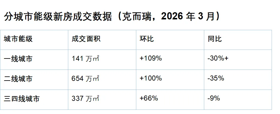 3月楼市并非全面回暖,而是呈现明显的结构性复苏特征,分化贯穿城市能级、产品类型与市场板块。