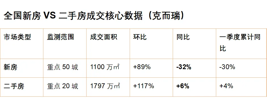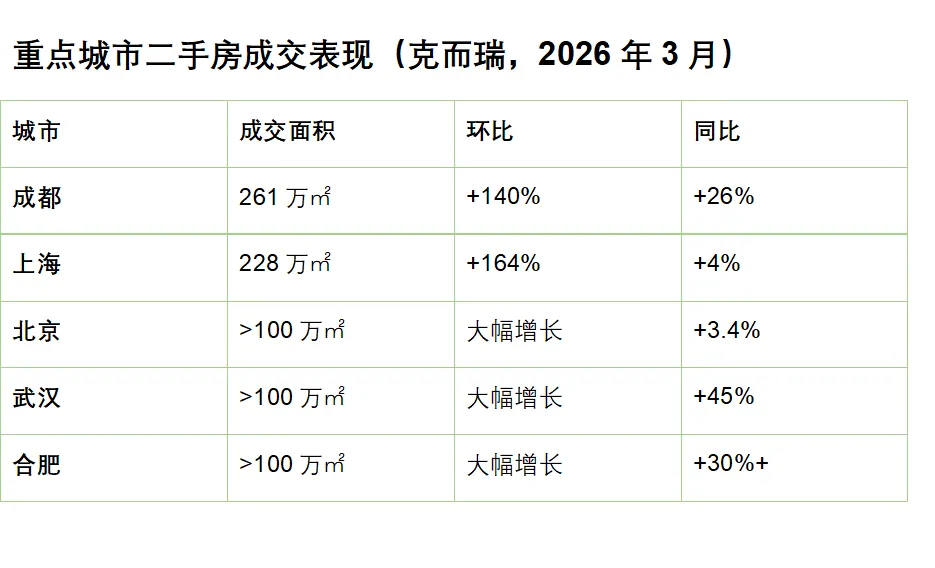 与新房形成强烈对比,3月二手房市场成为楼市回暖主力,成交量同比普遍上涨,价格跌幅持续收窄,核心城市率先企稳。