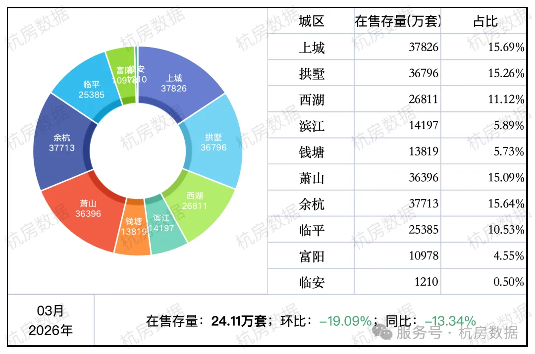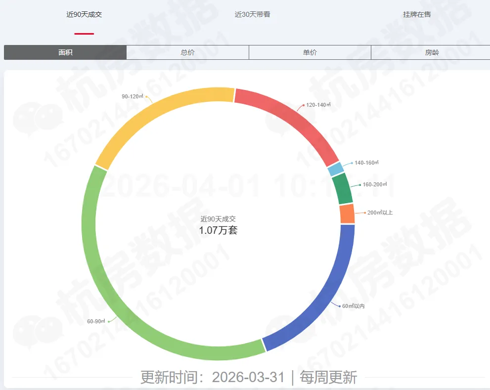 总价上,200万以内占比56.9%,400万以内占比29.6%,两者相加超过了85%。主力临平、闲林、良渚、星桥、金沙湖等近郊板块。