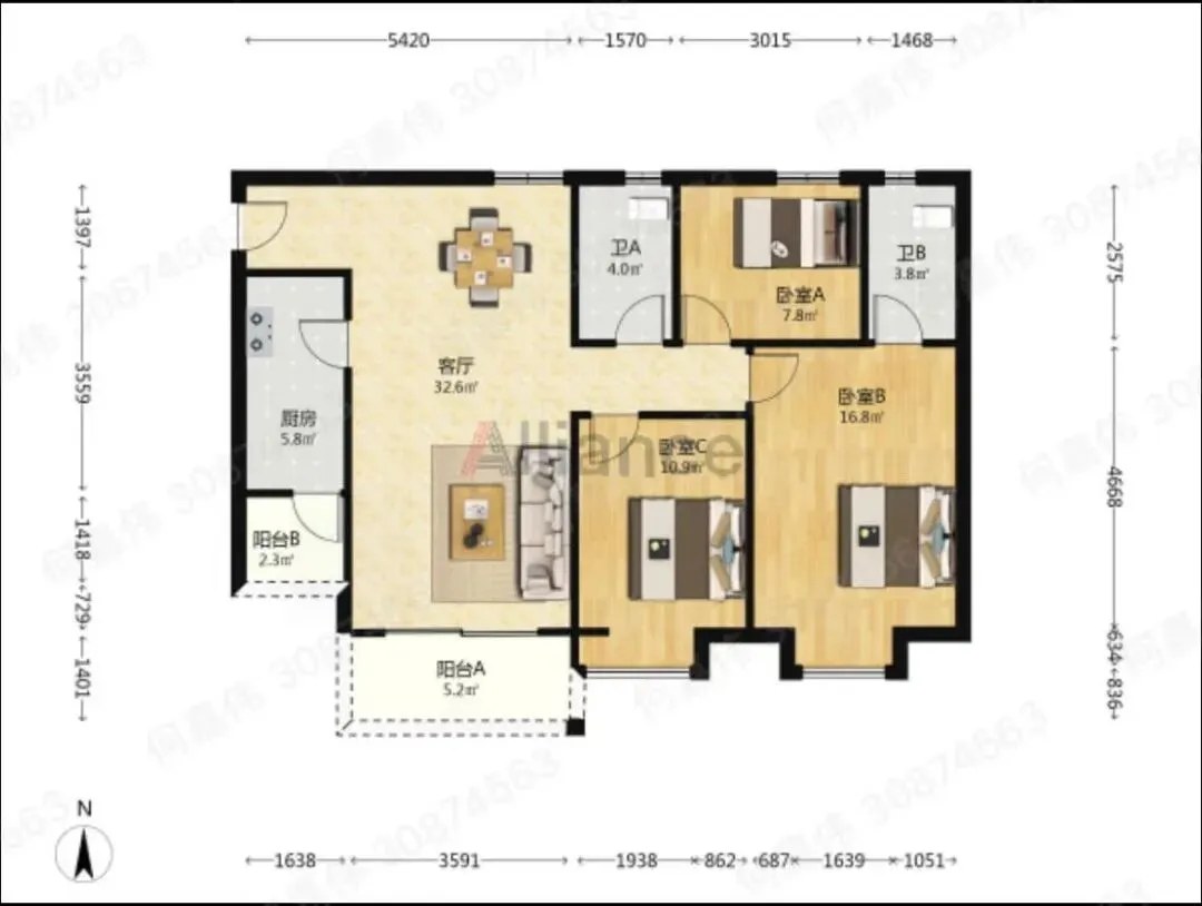 🔥步梯中低层 近朝安桂城地铁站 格局方正 精装修