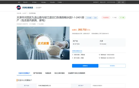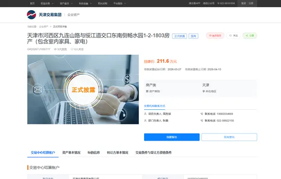 天津天保滨海投资服务有限公司华夏津典畅水园1-1-2401、1-2-1803两套房产,已在天津产权交易中心挂牌公示,欢迎有购房需求者垂询。