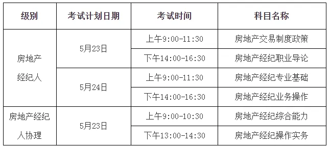 考试科目:《房地产交易制度政策》、《房地产经纪职业导论》、《房地产经纪专业基础》、《房地产经纪业务操作》(4 科)