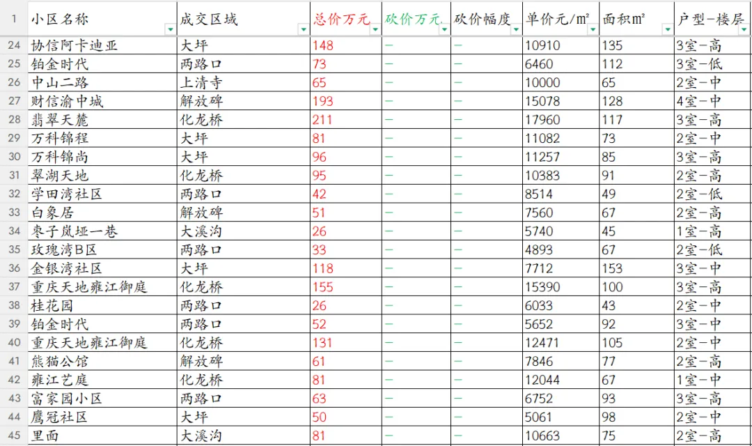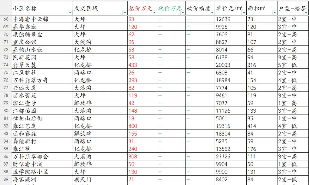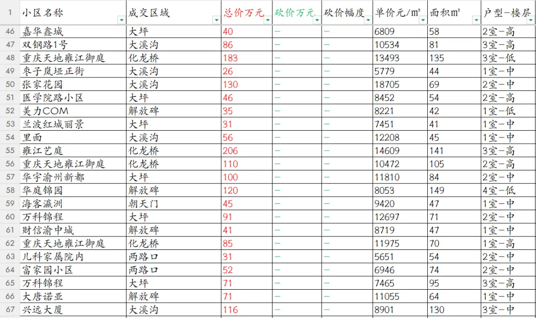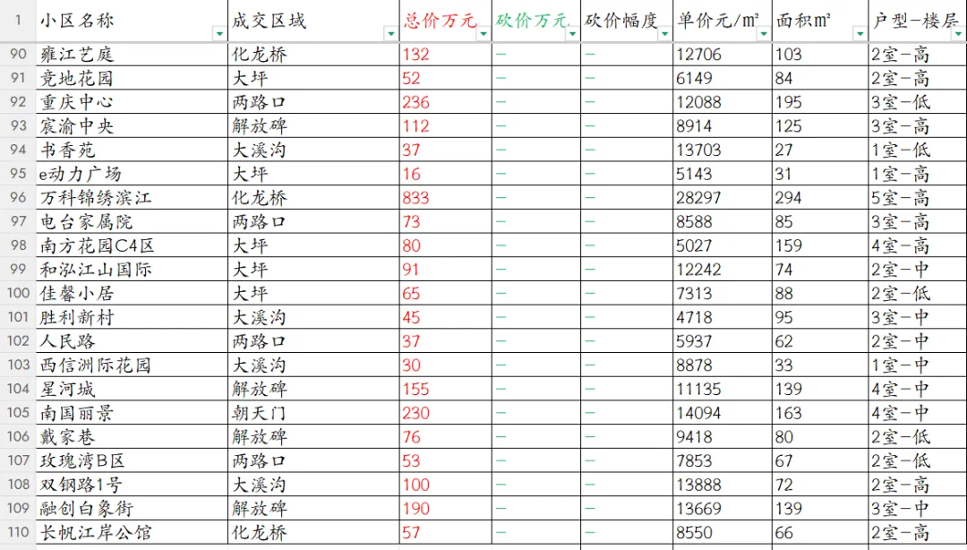【重庆楼市深度观察】渝中区本次共统计109套房源成交信息。