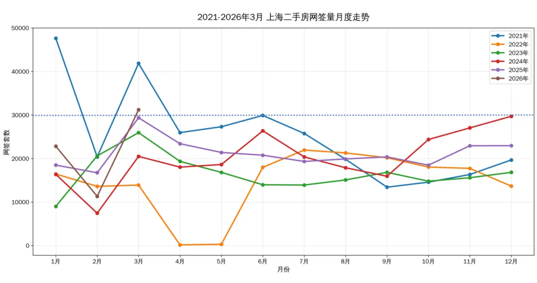 如果将二手房月成交两万套视为上海楼市的“荣枯线”,那么“三万套”无疑标志着市场进入了全面活跃阶段。