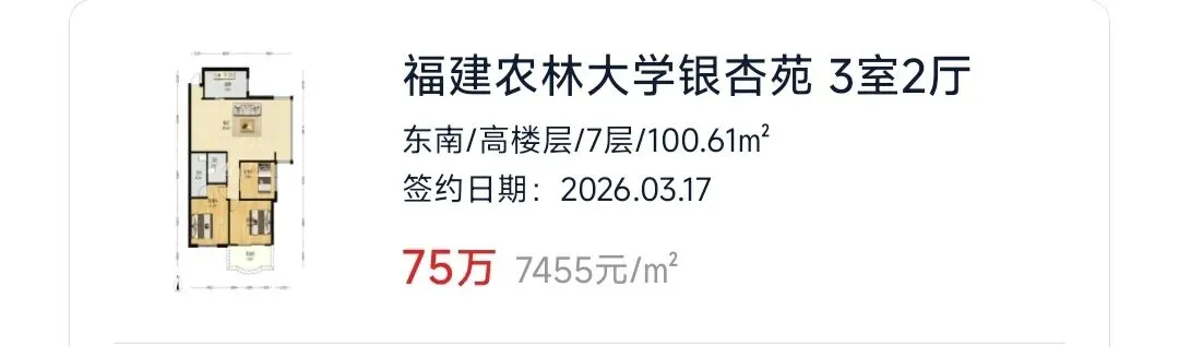 福建农林大学银杏苑,100㎡,总价才75万,单价仅7455元/㎡