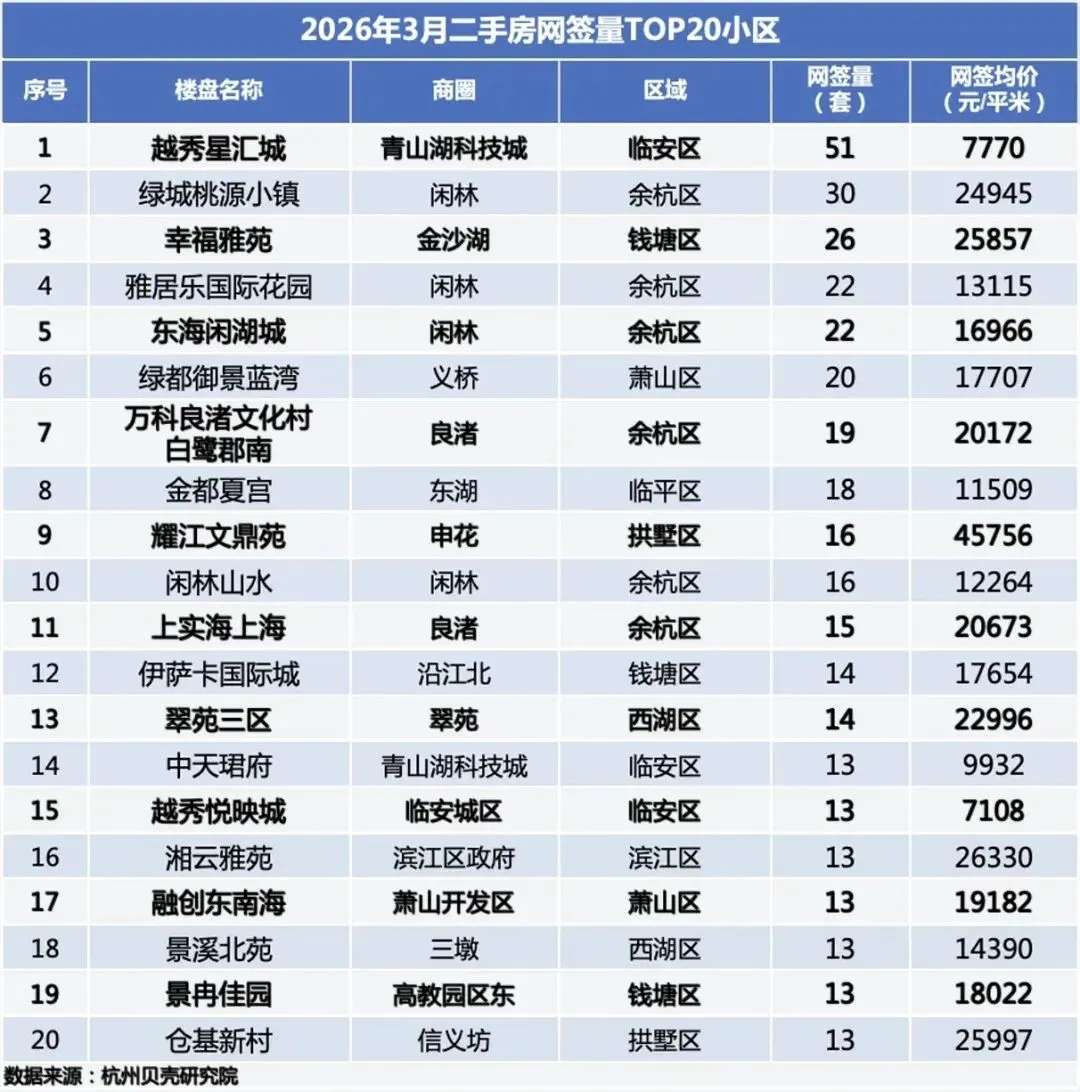 今天,我们就透过这份榜单,拆解杭州3月二手房的成交真相,看看谁是最大赢家,又藏着哪些置业信号。