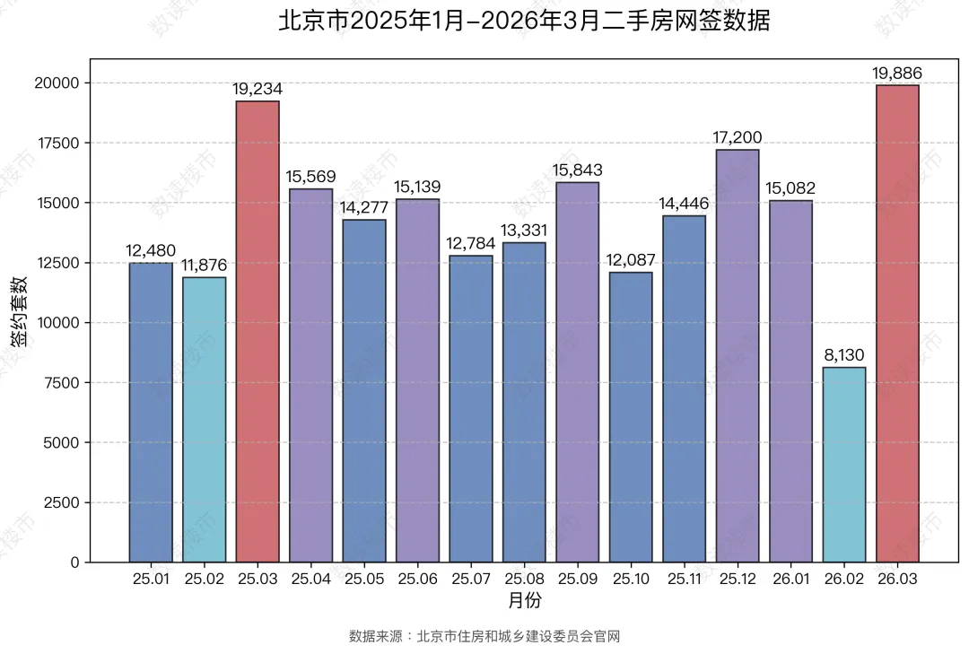 2025年1月-2026年3月,北京二手住宅网签趋势如下:环比变化:3月网签量较2月大幅增长,主要受春节后市场恢复、购房需求集中释放影响,属于季节性反弹。