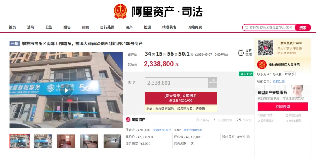 榆阳法院拍卖榆林市榆阳区欣泰园房产,233万元起拍!