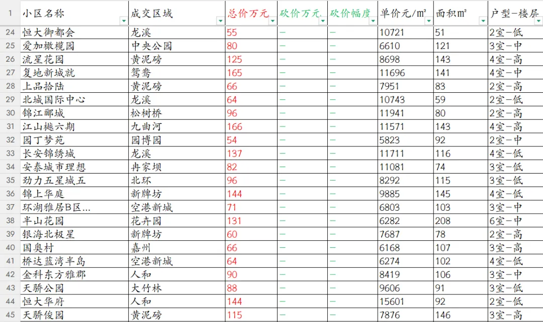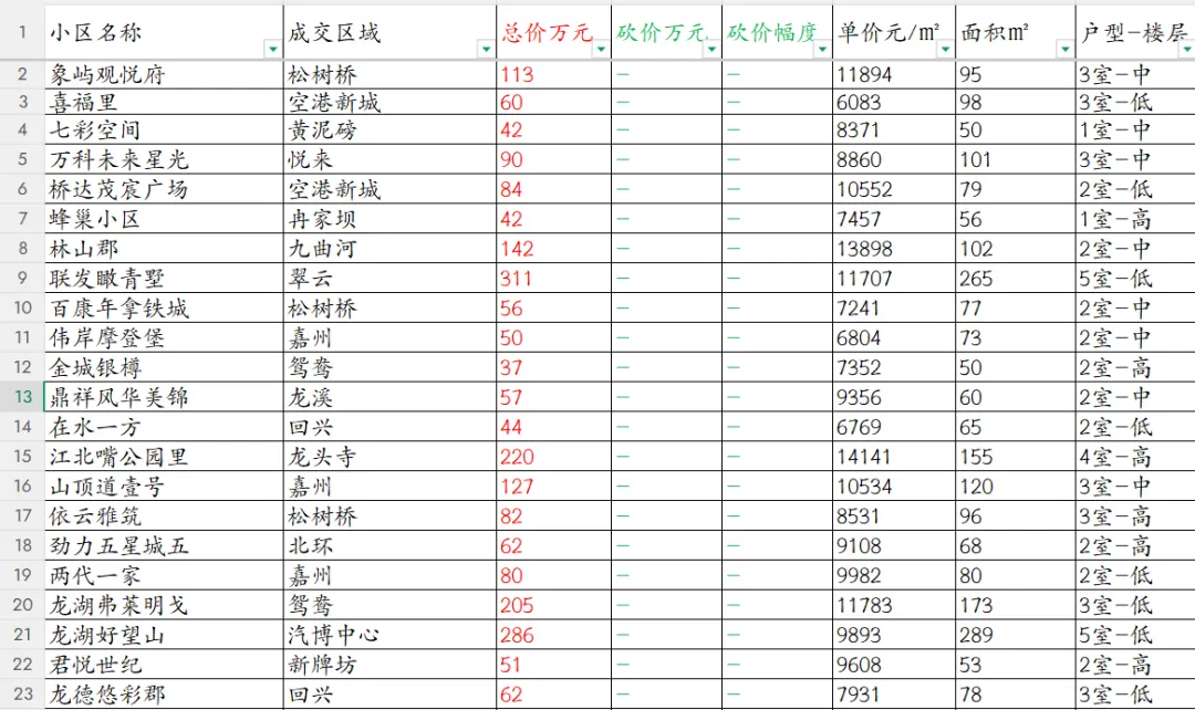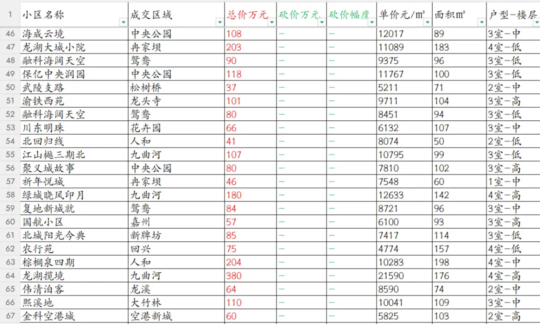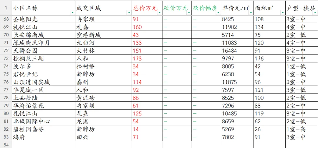 【重庆楼市深度观察】渝北区本次共统计82套房源成交信息。