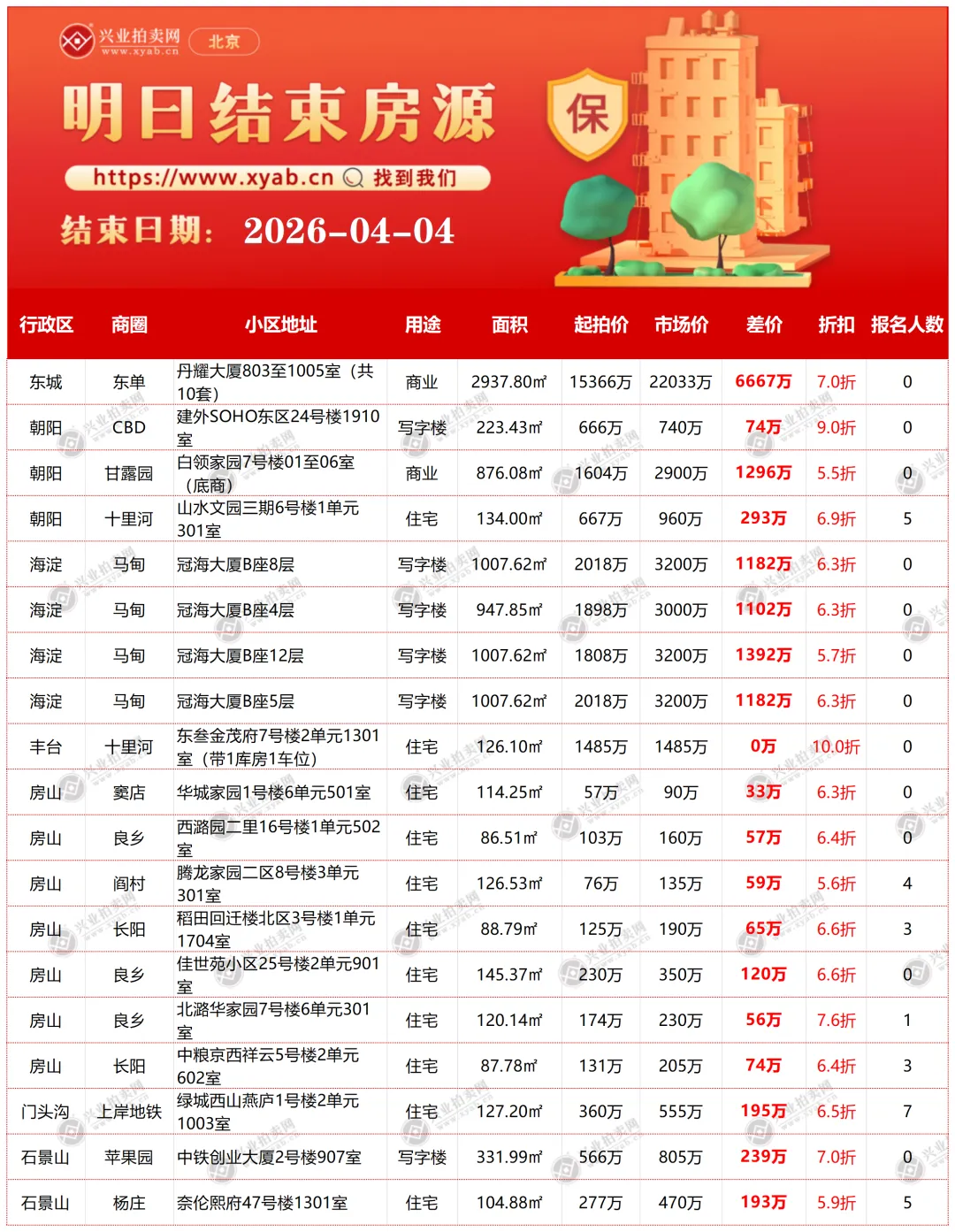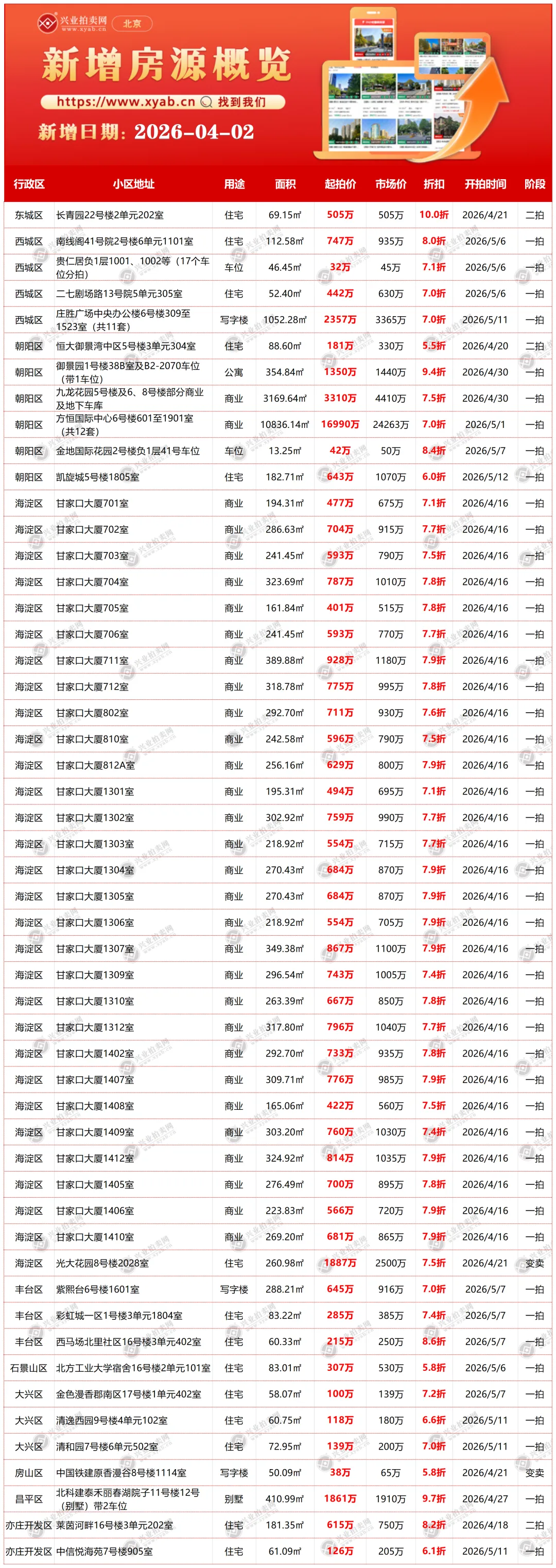 北京拍卖房产明日结束房源
