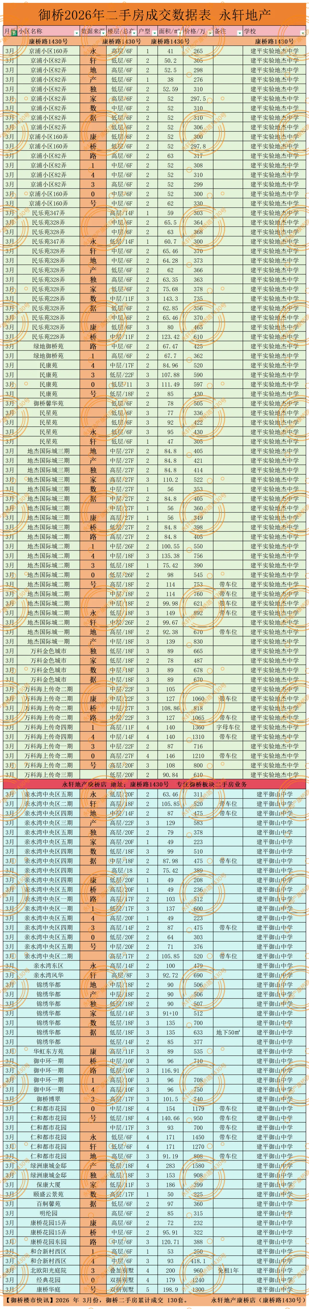 最新市场:3 月御桥二手成交井喷,累计成交 130 套,回暖明显。